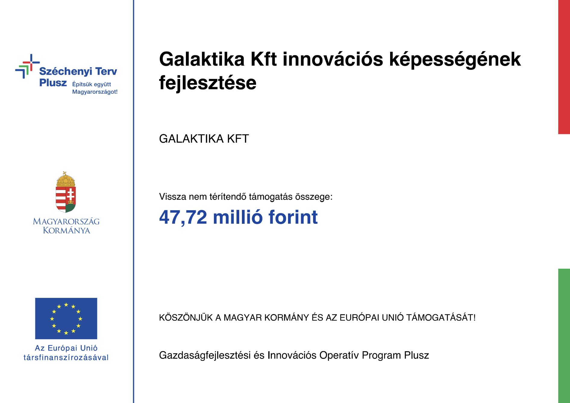 A projekt címe: A Galaktika Kft innovációs képességének fejlesztése
