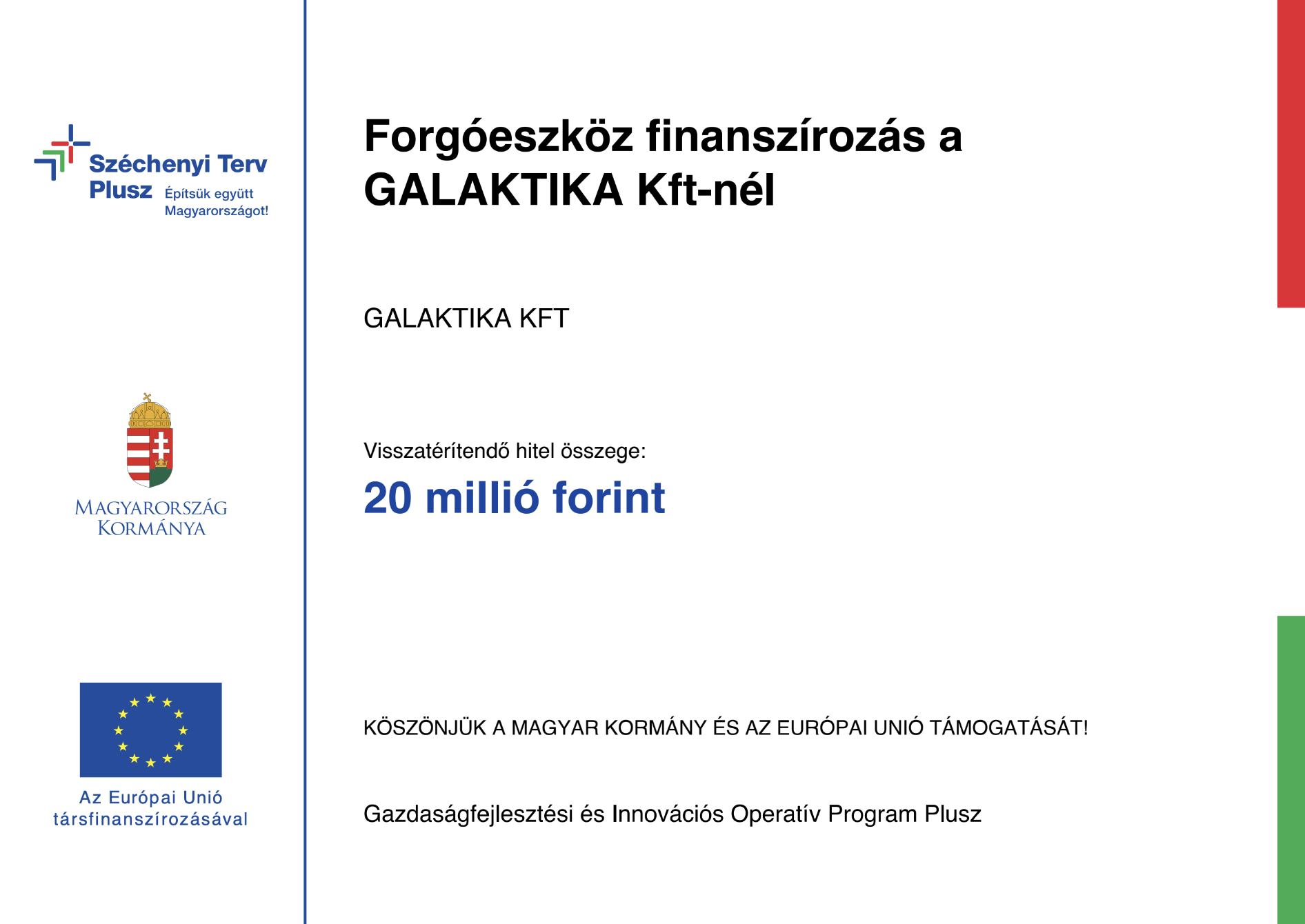 A projekt címe: Forgóeszköz finanszírozás a Galaktika Kft-nél