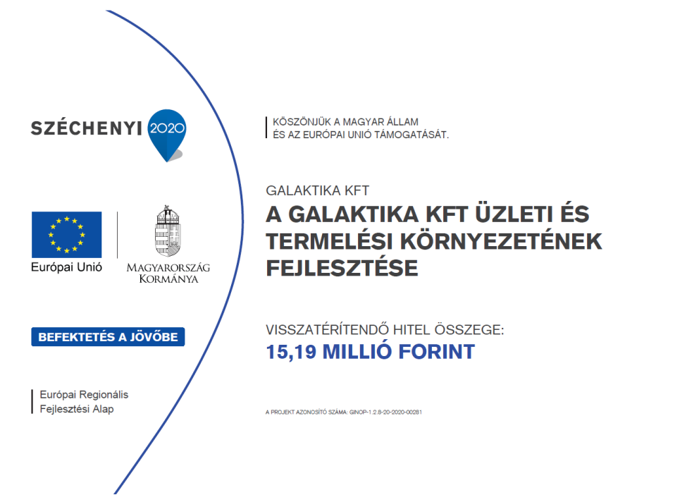 A projekt címe: A Galaktika Kft üzleti és termelési környezetének fejlesztése